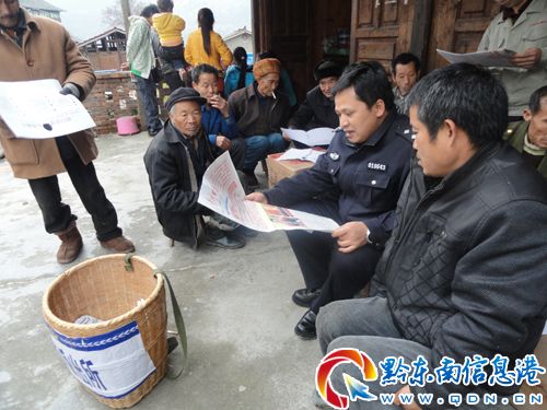 “黨的十八大報告指出,最大限度增加和諧因素,增強(qiáng)社會創(chuàng)造活力,今天我們來探討一下如何保一方穩(wěn)定的問題!” 這是被評選為黔東南州第二屆“十佳人民滿意警察”,被當(dāng)?shù)厝罕娪H切地稱為“背篼警察”的錦屏縣公安局河口派出所所長楊清高,12月18日,在河口鄉(xiāng)1943年紅軍長征經(jīng)過的苗寨瑤光村向群眾宣講十八大精神時所說的。