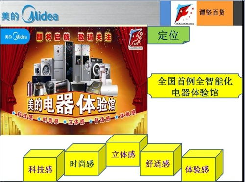 “幸福中國·共享美的·締造奇跡”!譚堅百貨斥巨資6000多萬,打造國內首例全智能化美的電器體驗館將于2013年1月落戶凱里世紀城。體驗館分為櫥窗展示區、家居模擬區、廚房展示區、產品成陳列區、休閑洽談區五大區域。