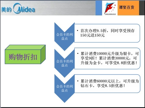 開業在即,譚堅百貨會員招募中,3萬張會員卡等你拿。會員卡可采取3種方式進行辦理.成為會員之后,將享有購物打折、積分抽獎、網上商城“秒殺”等7大利益點。
