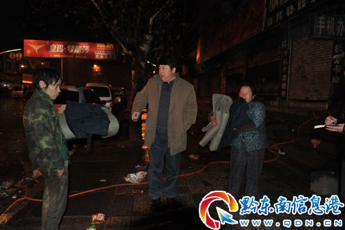 12月27日,氣象報告當天凍雨零下1度,本著職業的反應,是否流浪乞討人員路宿街頭,民政人的心里想著。凌晨40分,由凱里市民政局局長李啟發帶隊,組織本局未成年流浪兒童保護中心、社會救助局、執法大隊一行人員,以行政中心出發,路經萬博、大十字、汽車站、洗馬河、火車站、大閣山隧道、韶山南路、北京東西路等路段,對街道、公共場所、建筑物死角一一進行巡察。當巡察組來到原老二商場夜市,發現兩名流浪人員竄夜,其中一名是中年女性,經盤問一位來自麻江、一位來自施秉,才到凱里幾天,主要靠撿垃圾、乞討度日,巡察隊了解他們的生活規律后,對他們進行耐心細致疏導后,及時對這兩名流浪人員給予寒衣二套、棉被二床、人民幣貳佰元的救助。(雷安寧)