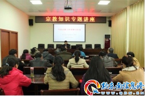 為全面提高州宗教局干部職工的宗教法規(guī)政策知識水平,進一步加強宗教干部的業(yè)務(wù)素質(zhì)和依法管理宗教事務(wù)能力。12月26日下午,州宗教局舉辦了宗教知識培訓(xùn)會,全局共40余人參加培訓(xùn)。本次培訓(xùn)會由州宗教局局長霍盛紅主持,由楊彪調(diào)研員作了《目前宗教工作的形勢和任務(wù)》專題講座。