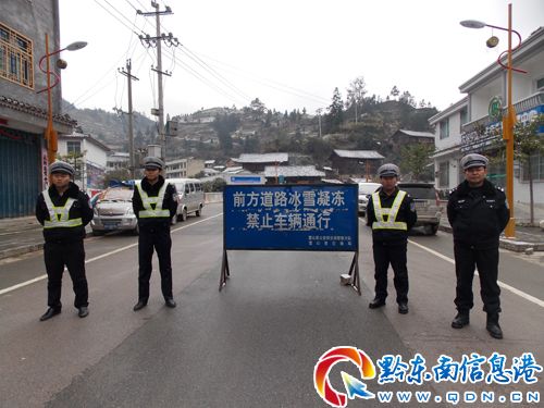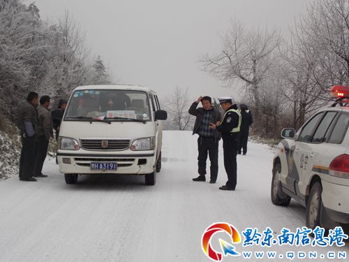 2012年12月29日,貴州省雷山縣境內下了一場大雪,為了讓廣大人民群眾和游客的平安出行,雷山縣公安局交警大隊于12月30日上午6點30分,立即組織四個檢查組,分別深入到大塘排里坳、望豐三角田、雷公山、西江黃里坳等高海拔雪凝災害路段, 與各鄉鎮公安派出所民警一起進行設卡封路,確保人民群眾的平安出行。(張希才 鄧德民)