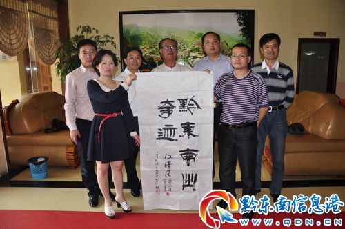 23日,卯秋民一行來到州委外宣辦考察,州委外宣辦、州政府新聞辦主任高俊華、州委外宣辦、州政府新聞辦副主任張曉華、州委外宣辦、州政府新聞辦工作人員楊彩霞等人熱情接待了卯秋民一行,雙方進行了親切交談。在交談中,了解到卯秋民還是一位享有盛名的書法家后,高俊華等人邀請卯秋民揮毫題字。卯秋民欣然應允,當即題寫了“黔東南出奇跡”、“愛國創新”、“博愛”、“忠誠”、“與時俱進”五幅書法作品。(張鴻)
