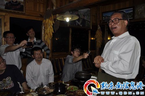 22日下午,卯秋民一行到達西江千戶苗寨時,恰逢該地正在舉行“聽西江聲音,唱苗家酒歌”大型山水實景民族流行音樂會新聞發布會,卯秋民、吳良臣等人受邀了參加了該新聞發布會。在西江,卯秋民一行先后觀看了獨具苗族特色的歌舞表演,品嘗了苗族特有的長桌宴,充分感受到了苗家人的樸素和熱情,領略到了古樸濃郁的少數民族風情,游覽了古老質樸的西江古街,參觀了歷史文化底蘊深厚的西江千戶苗寨博物館,欣賞了華燈璀璨的西江迷人夜景。在考察中,卯秋民對西江千戶苗寨的原生態建筑、民族文化傳承和保護以及西江的美麗贊嘆不已,表示回去后將大力宣傳西江,讓更多的人了解西江,了解苗族,前來體驗苗族風情。