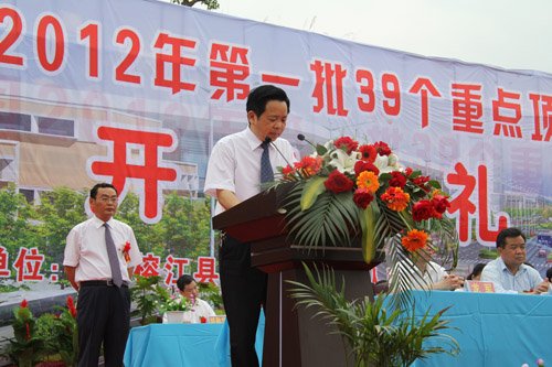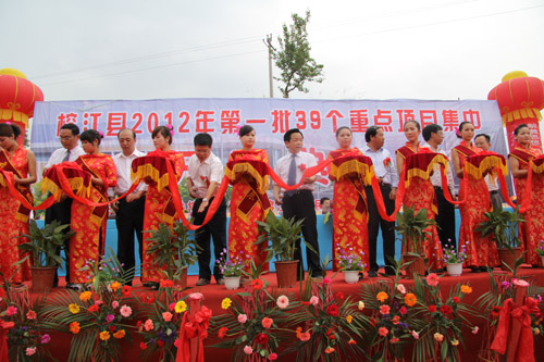 在全省上下認(rèn)真貫徹落實(shí)國發(fā)2號文件和省第十一次黨代會精神的大好形勢下,4月28日,榕江縣隆重舉行2012年第一批39個重點(diǎn)項(xiàng)目集中開工典禮,這是該縣認(rèn)真實(shí)施“三化同步”戰(zhàn)備,加快項(xiàng)目建設(shè)的一項(xiàng)重大舉措,標(biāo)志著榕江進(jìn)入了增比進(jìn)位、后發(fā)趕超的重要機(jī)遇期,必將有力地推動榕江經(jīng)濟(jì)社會的跨越式發(fā)展。