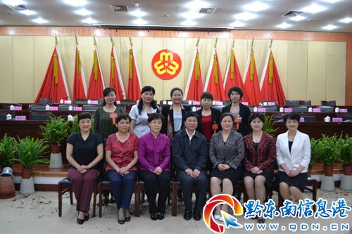新當選的黔東南州婦聯第九屆執委會主席、副主席與與會領導合影留戀