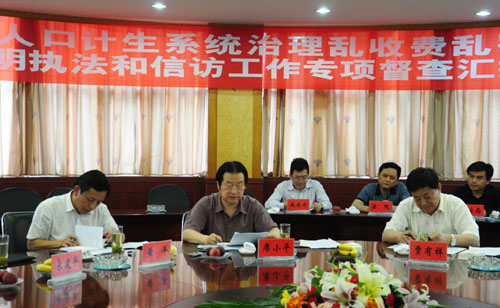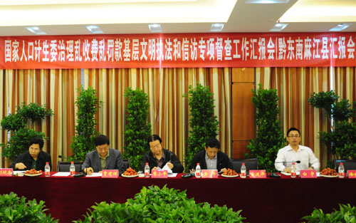 2012年5月21日至5月25日,國家人口計生委關于開展治理亂收費亂罰款、基層文明執法和信訪工作的專項督查組第四組對貴州省進行了督查。第四督查組由國家人口計生委黨組成員、巡視組組長席小平帶隊,國家人口計生委巡視組、政法司人員組成,巡視組巡視專員賈有祥等4名同志參加。貴州省人口計生委黨組書記、主任王忠和副主任黃平同志,省政法處人員陪同參加了督查活動。