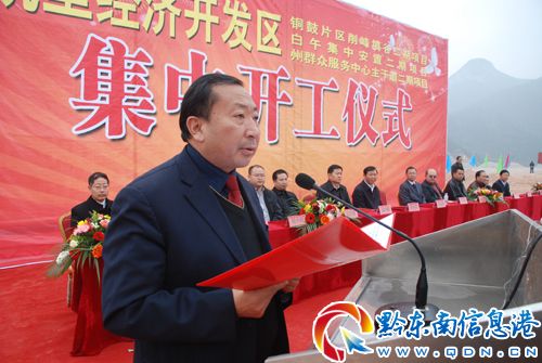 11月28日,凱里經濟開發區舉行銅鼓片區削峰填谷、白午生態移民集中安置新區、州群眾服務中心主干道等3個項目二期工程集中開工儀式。州委常委、凱里市委書記、凱里經濟開發區工委書記黃遠良宣布3個項目二期工程開工,副州長、凱里市市長、凱里經濟開發區管委會主任洪金洲講話。