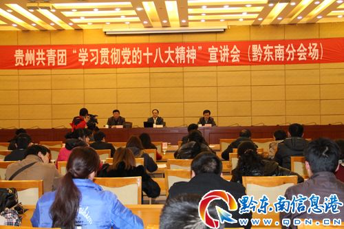 12月18日下午,貴州共青團“學(xué)習(xí)貫徹黨的十八大精神”宣講會(黔東南分會場)在州政府西樓會議室舉行。會議由團州委書記羅祖新主持。