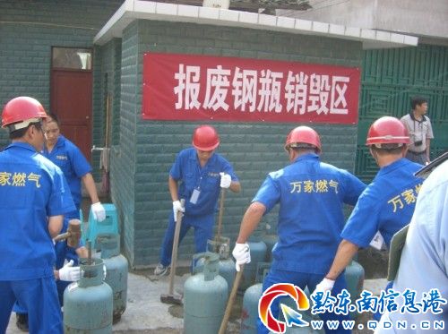 為規(guī)范氣瓶安全管理,消除氣瓶安全隱患,確保廣大人民群眾生命財產(chǎn)安全。2012年9月4日,臺江縣質(zhì)監(jiān)局組織工商、消防、城建、社區(qū)等部門在臺江縣宏達(dá)氣庫組織召開“打非治違”銷毀報廢氣瓶現(xiàn)場工作會議,對全縣166只報廢液化石油氣瓶進(jìn)行破壞性處理。