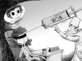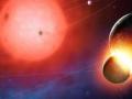 藝術概念圖,展現了環繞一顆瀕死恒星運行的行星偏離軌道發生相撞的景象。