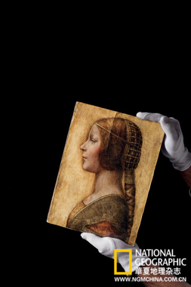 西爾弗曼將比安卡畫像的數碼圖像經電子郵件發給了馬丁·肯普,肯普是牛津大學藝術史專業名譽教授,同時也是享有盛名的達芬·奇研究專家,他經常收到人們發來的照片,有時候一周兩回,這些人堅信自己發現了新的達·芬奇大作,肯普把他們稱為“達·芬奇狂人”。“我的第一反應就是,不是真跡!”肯普告訴我。但是畫像里年輕女子面孔中透露出的“栩栩如生之氣”吸引了他,讓他想要仔細看看這幅畫,于是他乘飛機前往蘇黎世,因為西爾弗曼把畫像收藏在此地的一座地窖中。畫幅是330mm×239mm,比A4紙稍大。“看到它的那一刻,”肯普說,“我渾身一顫,隱隱感到這不是凡常之物。”