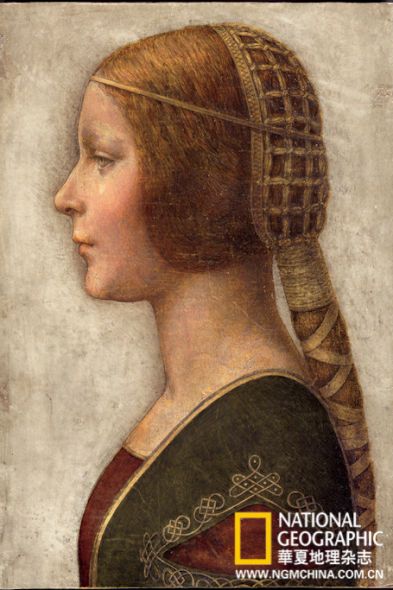 肯普還需證明畫像誕生于達·芬奇在世期間(1452~1519年),且其歷史坐標與畫家生平經歷相符。畫紙可能是用小牛皮制作,碳同位素測定顯示其年代處于1440~1650年之間。服飾研究表明畫中人來自15世紀90年代的米蘭宮廷,當時流行將頭發束成精美發辮。達·芬奇于該時期生活在米蘭,靠為宮廷成員畫像賺取工錢。畫像邊緣的裝訂痕跡暗示著它可能取自書本,書或許是為紀念宮廷婚禮而著。