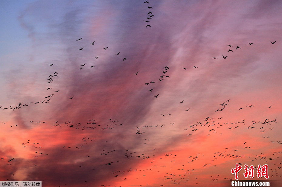 2012年2月2日,捷克布爾諾,萬只野鴨集體飛過天際。