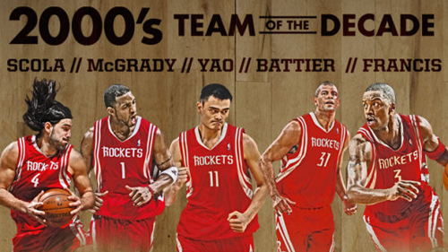 作為火箭45周年紀念的一部分,通過投票選出了火箭這十年的最佳陣容。他們就是姚明、麥蒂、弗朗西斯、巴蒂爾和斯科拉。