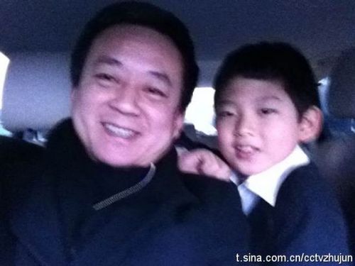 去年1月,朱軍曾在微博中貼出與兒子朱思潭合影