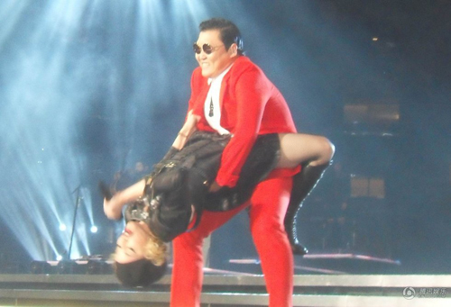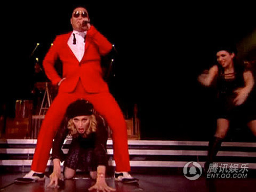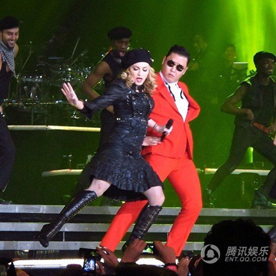 麥當(dāng)娜(Madonna)日前于紐約開(kāi)演唱會(huì)的時(shí)候,特別請(qǐng)來(lái)因跳馬舞而紅爆全球的韓國(guó)男歌手Psy做嘉賓,將自己的《Give It To Me》與對(duì)方的《江南Style》混合表演,與Psy大跳大熱騎馬舞,麥當(dāng)娜還穿過(guò)Psy褲襠,掀起演唱會(huì)高潮,最后兩人熊抱示好。Psy表示:“好榮幸獲得麥當(dāng)娜的邀請(qǐng)!”