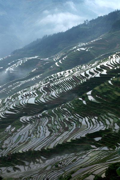 2012年5月9日,鳥瞰月亮山梯田。(黃秀福 攝)