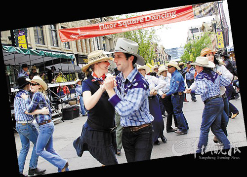卡爾加里牛仔節(jié)上,人們跳起西部鄉(xiāng)村舞蹈 黃曉南攝