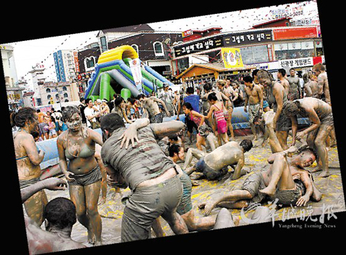 人們在保寧泥漿節(jié)上盡情嬉鬧 韓國旅游發(fā)展局供圖