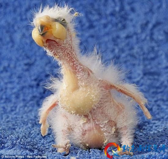 你叫誰丑八怪?鸚鵡雛鳥納爾遜在德國Bergzoo動物園出生后就被父母拋棄,不過現在它已經適應了這種生活