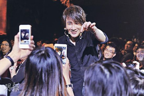 劉謙走到觀眾席,粉絲立刻拿起電話狂拍偶像。