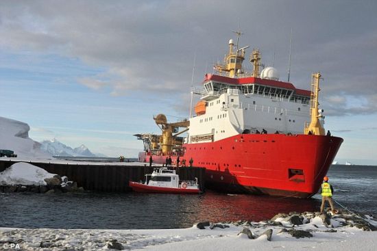 英國皇家海軍艦艇保護者號破冰船:這艘英國海軍船停靠在南極洲羅瑟拉冰上科學站。這是這艘破冰船有史以來到過的最南端。