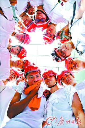 廣州日報訊 穿著中山裝、旗袍或者漢服拍大學畢業照也許你見過不少,但戴上安全帽、身穿汗衫、拿著扳手的“民工版”畢業照相信你沒看過。昨日下午,廣東外語外貿大學新聞與傳播學院廣告081班的36名畢業生,在學校圖書館前,舉行了一次別開生面的“社會主義新民工”主題畢業照活動。
