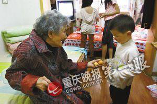 重慶晚報記者跟隨老人來到租賃房。剛進門,吳桂芳便看到10歲孫女,剛才還掛滿淚水的臉,立刻露出笑容。