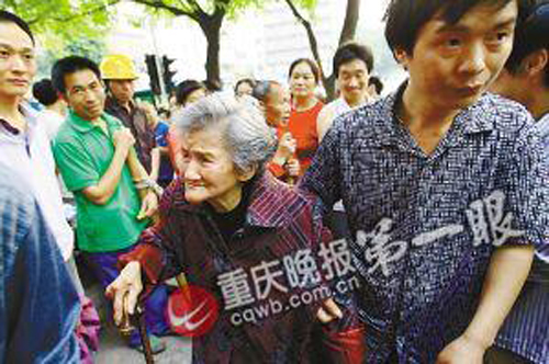 為防意外,眾多市民一路跟隨老人,直到傅中奎將老母背上樓才散去。