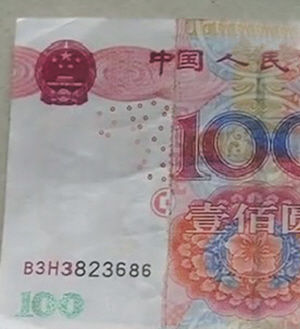 商報臨沂消息 近日,臨沂一家育嬰超市老板王先生在晚上清點賬目時發(fā)現(xiàn),在收到的100元人民幣里,有一張不太對勁,仔細(xì)一看,卻發(fā)現(xiàn)這張錢是拼接起來的,而這張錢的右邊四分之三是真幣,左邊的四分之一卻是假的。