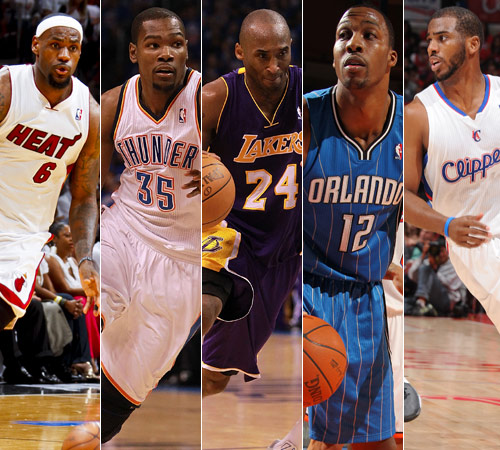 搜狐體育訊 北京時間5月25日凌晨,NBA官方正式公布了2011-12賽季最佳陣容。本賽季常規(guī)賽MVP勒布朗-詹姆斯領銜第一陣容,在最多120張第1順位選票中,皇帝贏得其中的118張。除了詹姆斯之外,進入第一陣容的還有湖人隊的科比、雷霆隊的凱文-杜蘭特、魔術隊的德懷特-霍華德,以及快船隊的克里斯-保羅。