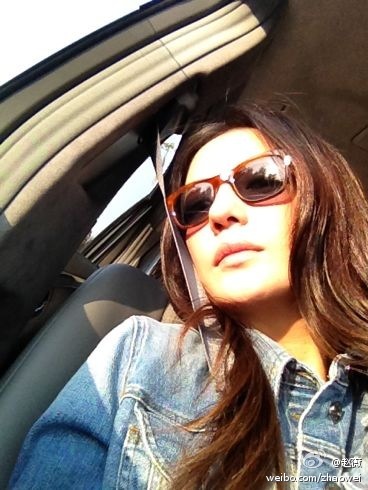 8日,趙薇在微博曬出日光浴照,照片中,趙薇穿著厚牛仔裝,戴墨鏡坐在車內(nèi)盡情享受陽光。