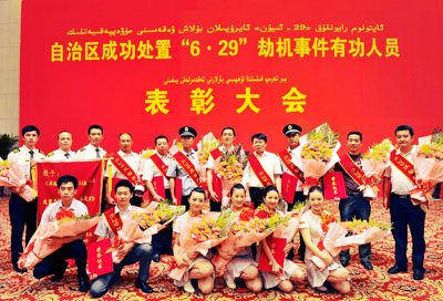 自治區黨委、人民政府同時決定,對所有參與處置“6·29”劫機事件的機組成員和乘客給予嘉獎。