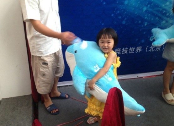 重金之下,玩家們都熱情高漲,抽獎時整個場地坐著、站著都布滿了人。很多孩子們對海豚的期盼甚至超過了一等獎new iPad,甚至有個5歲的小女孩在看到爸爸中獎了之后,興奮地沖上了領獎臺,一把把海豚摟入懷中,笑得天真爛漫。