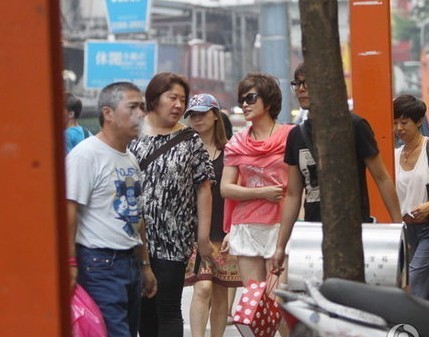 當天中午劉曉慶現身西門町,只見她身穿黃色POLO衫搭配藍色熱褲,撞色風格顯得活力洋溢。黑超遮面的天后劉曉慶行事相當低調,在經紀人及助手簇擁之下開心逛街掃貨。由于未受到外界干擾,劉曉慶神情放松悠閑挑選,雖然逛的是平價商圈,但似乎收獲頗豐。或許是十分中意戰利品,劉曉慶就在店鋪內換上了新買的設計感十足的粉色印花絲巾款上衣,搭配白色緞面花苞熱褲,立刻變身粉嫩小女人,繼續開心掃貨。
