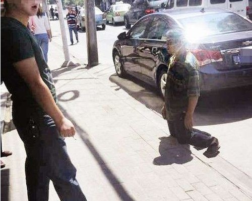 “他當時跪在地上一動不動,還用手作揖,看著讓人心酸。”目擊者徐女士說,當時劉老漢對小車司機說,“你打我幾下,踢我幾腳也可以,只要能解決問題,不然耽誤你的時間,也耽誤我的時間。”