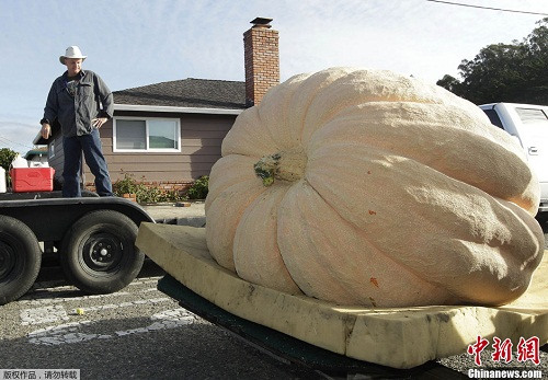 報道稱,45歲的薩德•斯塔爾對于種植巨型南瓜非常在行,這已是他第三次種出冠軍南瓜。今年,他的南瓜比第二名重了115公斤之多。