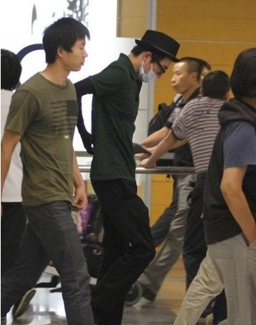 由于航班一再延誤,飛機降落時已凌晨兩點。俞灝明在工作人員陪同下出現,起先還自己推著行李車,戴著禮帽、黑框眼鏡及用口罩遮面的他,看上去精神不錯,但手上仍能看到保護身體的黑色彈力衣露出來。