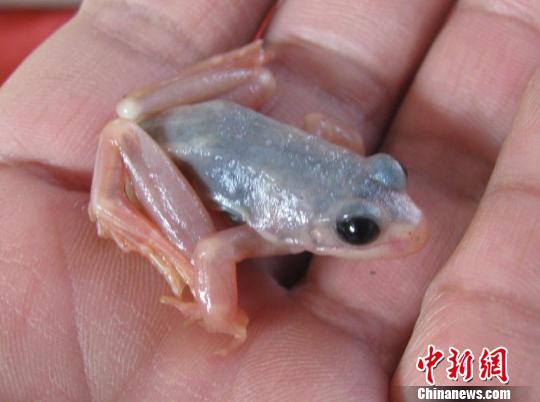 吉林省樺甸市長白山林蛙種源基地近日發現一只“白蛙”,通體透明,外觀可見骨骼和內臟。11月10日,吉林市野生動物保護協會副秘書長唐景文接受記者采訪時稱,“白蛙”系蛙類罕見的白化現象導致。