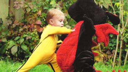 近日一段關于一個嬰兒在自家花園模仿功夫巨星李小龍,并同自己的玩具龍搏斗的短片在網絡上點擊超過5百萬次。這個穿著黃色連體運動服的嬰兒武打動作有模有樣,可愛至極。