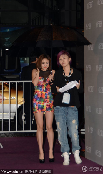 上海,日前,鄭鈞小嬌妻劉蕓冒雨參加某活動。當日,天空下起了雨,而天氣也是十分的寒冷,只見,劉蕓性感小短裙現身,邊上工作人員幫其打傘,很明顯劉蕓冷到不行,蜷縮著身體還不時的摸摸鼻子應該是凍的流鼻涕了。然而劉蕓很是敬業,強忍著面帶微笑保持狀態。