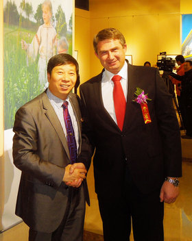 活動期間,劉瀚鍇先生受到了白俄羅斯共和國文化部常務(wù)副部長卡拉切夫斯基的親切會見和熱情擁抱,部長先生首先向老朋友劉瀚鍇先生問好,并介紹了此次專程來華參加中國文化部和白俄羅斯文化部主辦的,為慶祝中國和白俄羅斯建交20周年所舉辦的活動,并且很高興在北京能夠再次與老朋友見面。同時,劉瀚鍇先生向部長轉(zhuǎn)達了白俄羅斯共和國工商會駐北京首席代表,資深外交家伊戈爾·巴巴克先生對卡拉切夫斯基部長的良好祝愿!