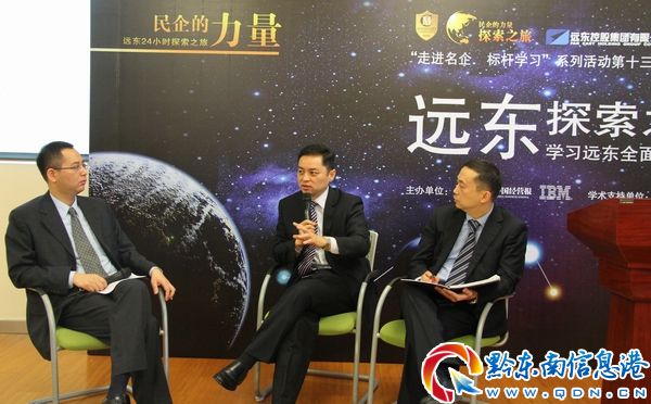 隨后,由資深評論家、《蔣錫培管理日志》作者劉曉午擔任主持人,與徐浩然、葉國暉舉行三人談,探討交流遠東發展、經營、管理之路。主持人分別從企業的戰略目標、五次改制、產業方向和商業模式創新等方面提出問題,徐浩然以遠東為例,一一回答了主持人的提問。他講到,公司戰術、企業管控能力十分重要,要想實現1500億的戰略目標,離不開“三轉”,即轉型、轉變和轉化。大型企業需要轉型,中型企業需要轉變,而小型企業需要轉化。一個企業最重要的是資源整合能力。很多商業的模式和邏輯之所以不成功的原因,很大一部分來源于不能夠很好支配整合資源。就遠東而言,成立網絡公司使得電纜產業搭上轉型的快車。未來遠東有很明確的目標和愿景,但是也面臨挑戰,這就需要我們每一位遠東人的努力。