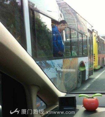 昨日,一名男子在公交車上對著窗外小便的照片引起了網友的熱議。圖片中一名身穿藍色上衣的男子,打開車窗對外撒尿。目擊者賈先生說,當時是7:40,地點大約在廈門SM商業廣場紅燈路口附近,男子當時的行為差點弄臟他的車,于是拍下了這張圖。