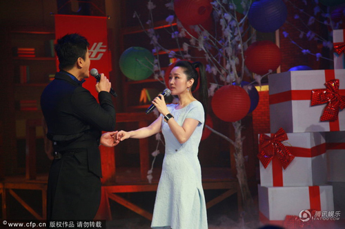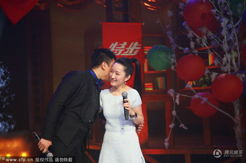 楊鈺瑩17日與毛寧一起錄制《天天向上》,現(xiàn)場遭到汪涵率領(lǐng)天天兄弟“圍攻”獻哈達,而楊鈺瑩和毛寧兩人不時與其貼面耳語,十分親密。