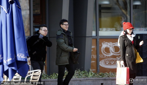 12月25日圣誕節當天在東四環某會所外遇到男星吳樾的座駕。記者進入找尋看見吳樾正在蘋果店內詢問店員。他戴著黑色眼睛框,墨綠色羽絨大衣,陪在其身邊有一男一女。