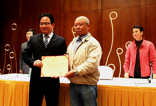 黃國彬局長向“廈門號”船長魏軍授“海洋旅游嘉年華活動推廣大使”聘書