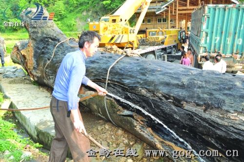 2010年8月,三都水族自治縣,一棵陰沉木從都柳江里被打撈出來。出資打撈的村民原本打算借此發(fā)財,但政府部門認為這屬國家資產(chǎn),不能私自出售。此后,這個“寶貝”就一直放在公路邊上,飽受風(fēng)吹日曬(去年4月25日,本報曾報道)。經(jīng)過反復(fù)協(xié)商今年4月24日,村民們決定將這個“寶貝”贈送給當(dāng)?shù)芈糜尉皡^(qū)。
