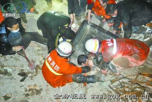 為保證搶救更多的生命,現場官兵以有生命跡象的被埋人員為主,全力施救,同時兼顧搜尋工作,繼續挖掘、搜尋被困人員。5時30分許,消防官兵將全部11名被埋人員救出,除不幸罹難的3人外,8名受傷人員已及時送往黔西縣人民醫院救治。